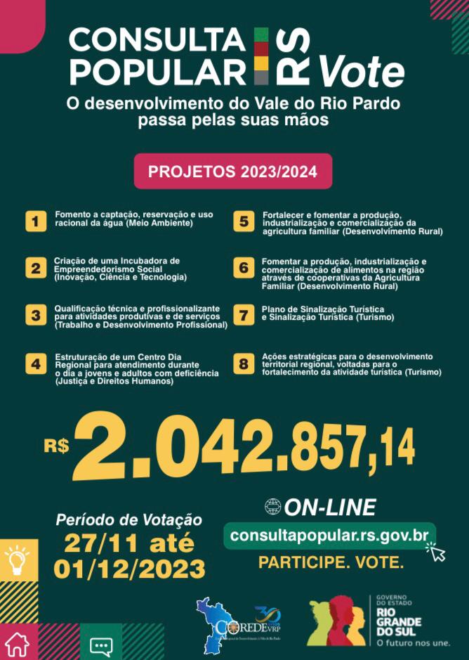 Participe você também, elegendo projetos que contemplem a região Centro Serra 2, 3 ou 7.