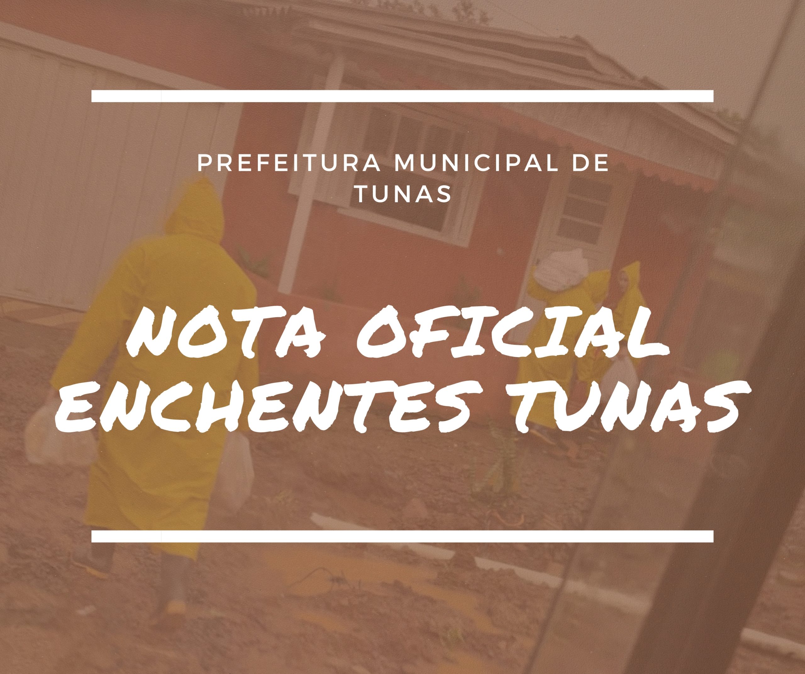 O Executivo de Tunas salienta ainda que desde a madrugada todas as medidas possíveis para recuperação e auxilio das famílias atingidas, bem como da infra-estrutura atingida estão sendo feitas no intuito único de continuar dando proteção e condições a nossa população, nesse sentido ainda pede-se a compreensão da população para dizer que todos os esforços estão sendo envidados para pronta recuperação das localidades atingidas, no entanto devido a magnitude do evento ter atingido todo o município a recuperação poderá demorar mais do que o habitual, ressalta-se o firme compromisso desta administração municipal com a melhoria constante de nossas estradas, segue inabalada, e que mesmo com todos estas chuvas que tem castigados a nossa população, continuamos e CONTINUAREMOS firmes com o nosso compromisso de melhorar constantemente nossas estradas, e para alem disto continuamos com o firme propósito de proteger e amparar a cada cidadão Tunense.