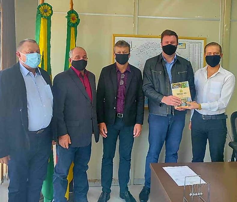 Prefeito Paulo Henrique Reuter, Vice Prefeito Genário Cézar de Oliveira, o Secretário da Fazenda Ivan Ernani Kaufmann e o historiador Dr. João Riél juntamente com Giovane Wickert, Secretário Adjunto da Secretaria de Obras e Habitação do RS, em visita a Porto Alegre para tratar de pautas do interesse do município de Tunas nos Programas de Perfuração de Poços, Máquinas e Nenhuma Casa Sem Banheiro.