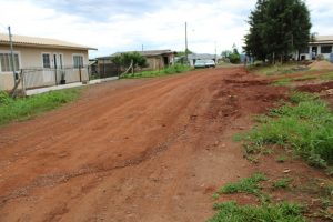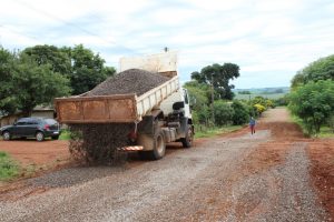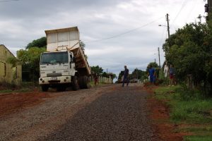 Além de estar sendo nivelado com a moto niveladora, está sendo britado, o que acarretará na diminuição de barro nas vias da cidade.