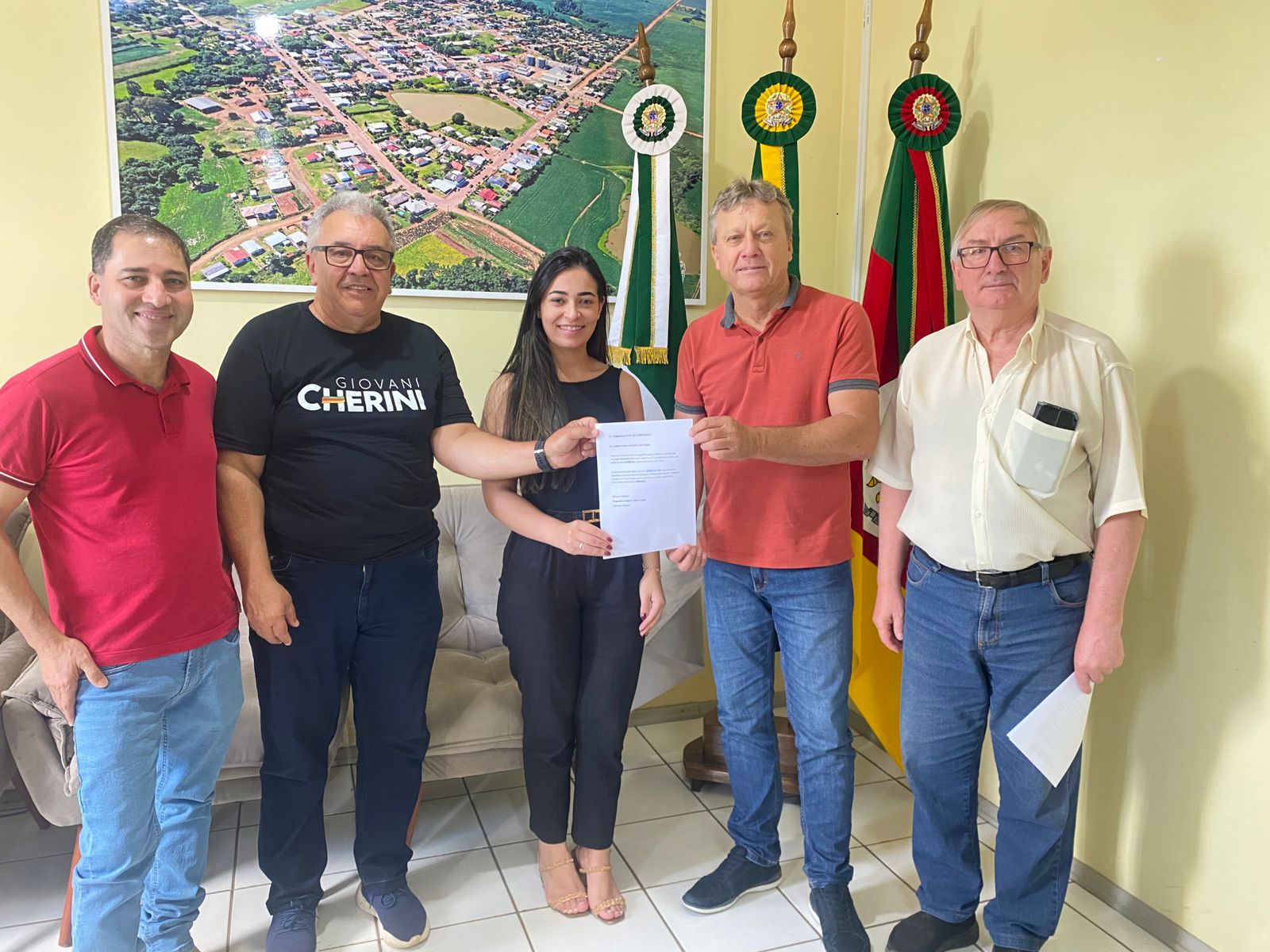 Estavam presentes: Prefeito Municipal Paulo Henrique Reuter, acessor parlamentar Pedro Paulo pereira Nunes, vereadora Eduarda Caroline Garlhardo Hesper, secretario da agricultura Gil de Mello e secretário administração e planejamento Claucidio wendel.